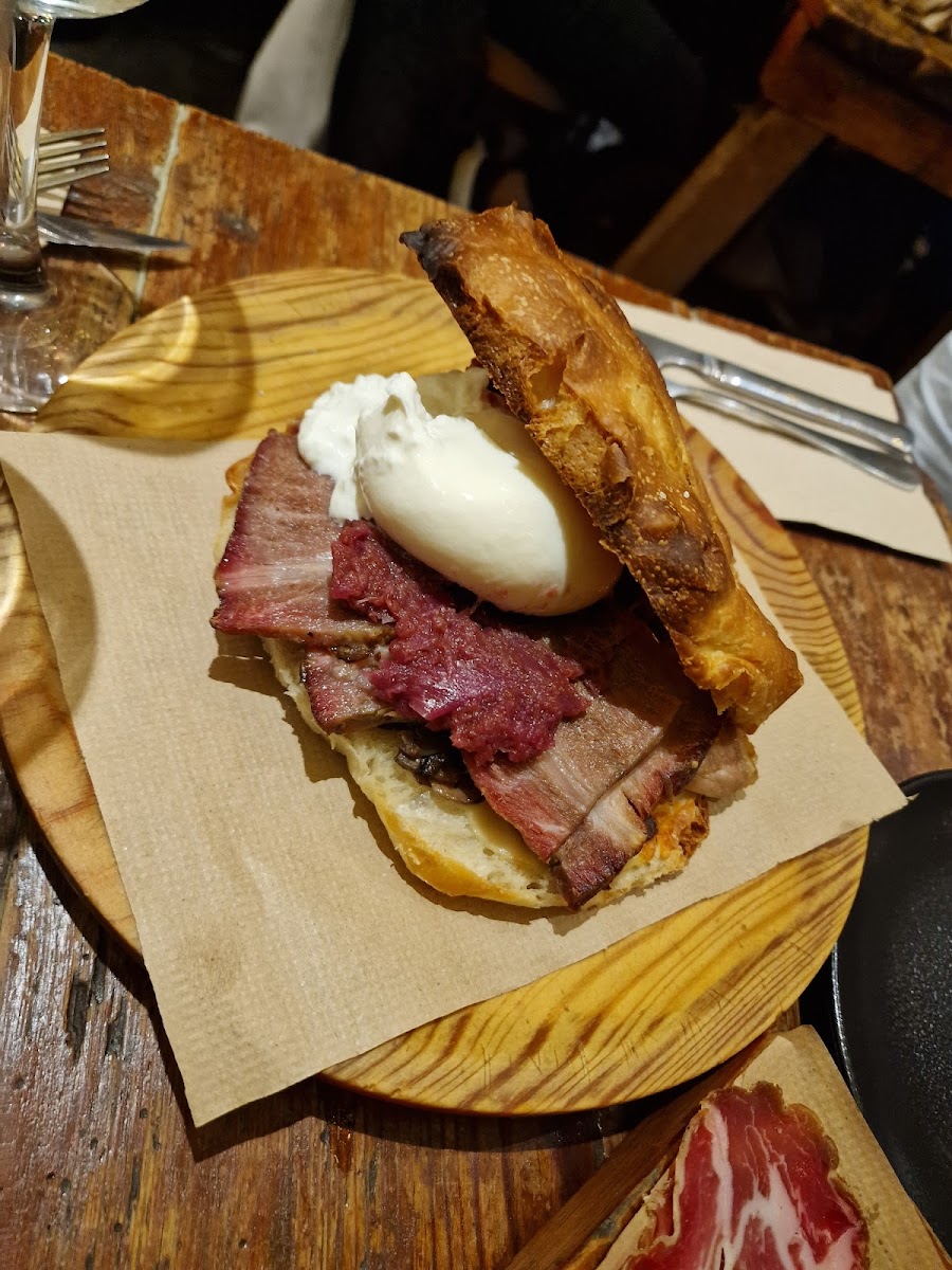 Lorenzo slicing the ham and preparing the delicious sandwich and Alessandra serving with a smile, this small restaurant is both charming and magical. Super good food, fantastic people working there. My warmest recommendations!