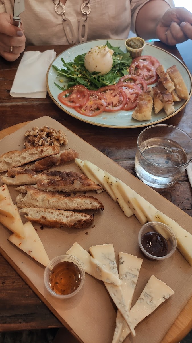 This is a very small but quaint restaurant for individual pizzas, specialty sandwiches and a well done charcuterie board, which can be added to for multiple people. The wine is very good but inexpensive and the aperol spritz was very large and extremely reasonable enterprise. The four fomaggi pizza was enough to share and the charcuterie board for one, was filling, made great toppings for the pizza and ethan had some leftover to bring home. This is a good drop in place, great for a party of two and worth coming back.
